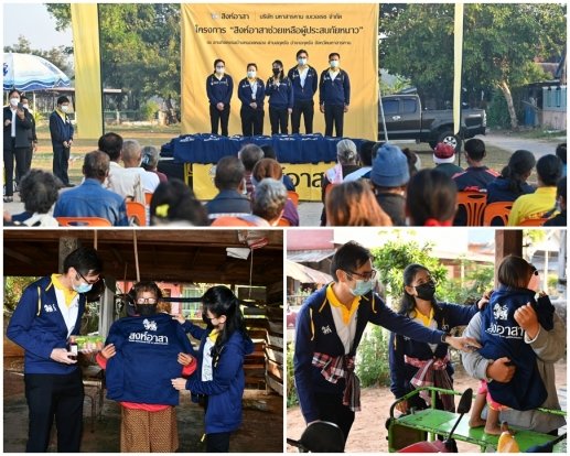 จากนั้นเดินทางต่อไปยังศาลากลางจังหวัดมหาสารคาม เพื่อมอบเสื้อกันหนาวสิงห์อาสา จำนวน 500 ตัว โดยได้รับเกียรติจาก คุณเกียรติศักดิ์ ตรงศิริ ผู้ว่าราชการจังหวัดมหาสารคาม เป็นตัวแทนรับมอบและส่งต่อเสื้อกันหนาวให้กับชาวบ้านในพื้นที่ที่ประสบภัยหนาวในครั้งนี้
